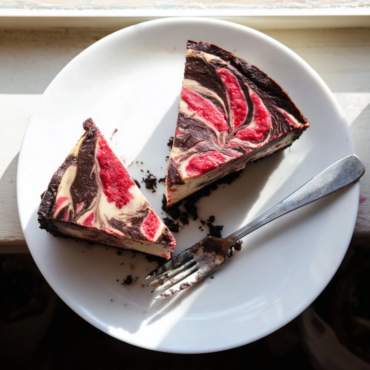 There is something deeply satisfying about cutting into this cheesecake and seeing that ribbon of bright red running through the dark chocolate layers. My friends actually gasped the first time I served it, which feels like the highest compliment a dessert can receive.