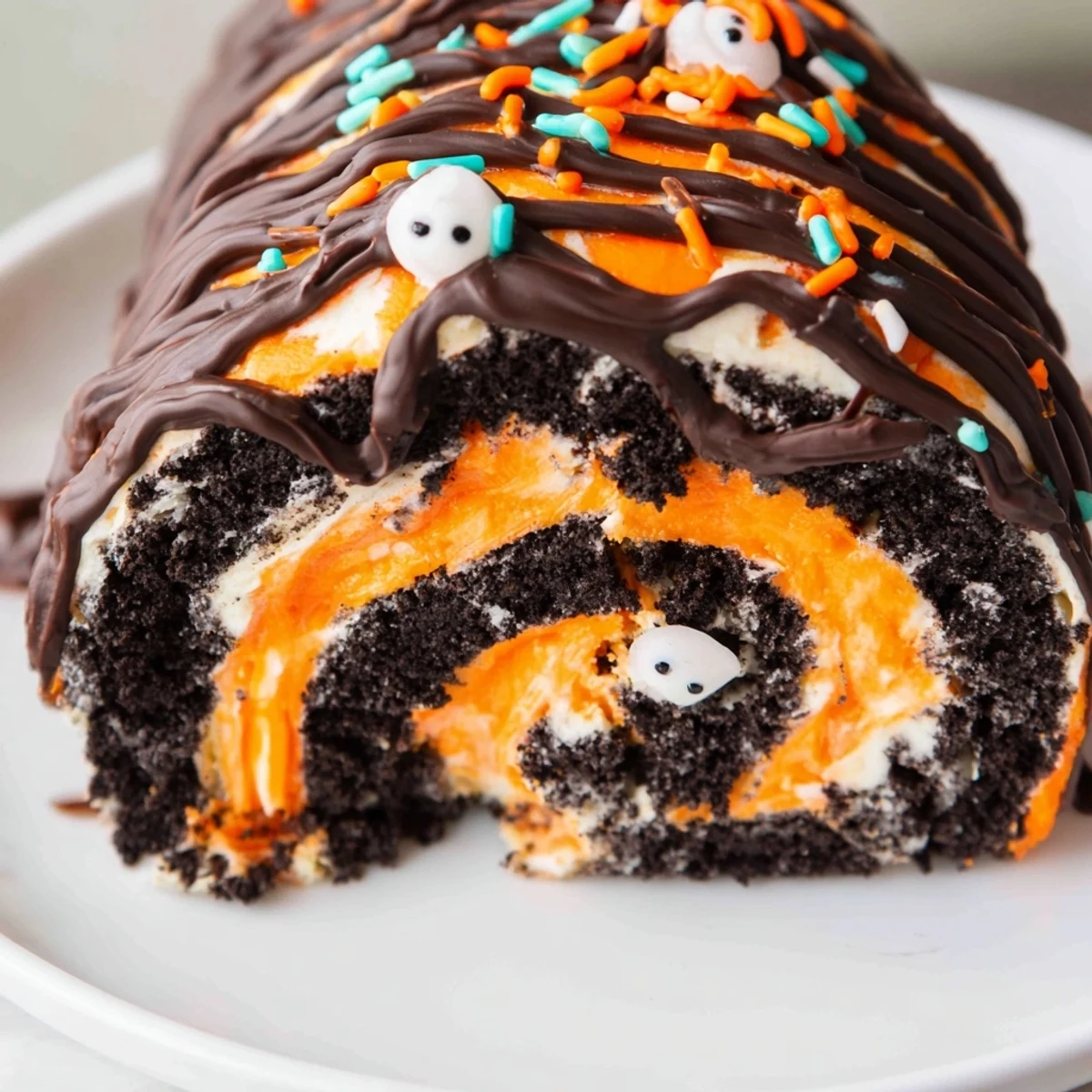 Try dividing the whipped cream and coloring half orange and half purple for a swirled effect inside the roll. Or skip the Halloween theme entirely and use red and green for Christmas, pastels for spring, or keep it classic white and let the crushed Oreos provide all the visual drama.