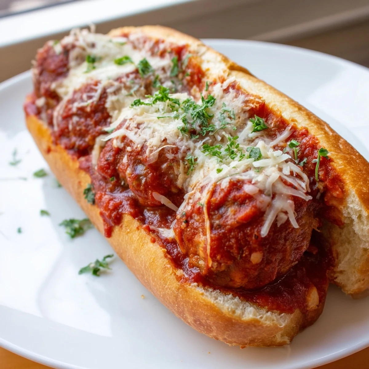 - Slice each sub roll horizontally without cutting completely through, creating a hinge that holds everything. Nestle 3-4 meatballs with plenty of sauce into each roll.